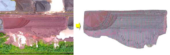 As above mentioned that Capturing Pictures of the Pile using Crane is properly represented by Sections and each Section has at least two (2) Pictures taken at a varying angle. The Pictures taken from each Section are processed by the Software to Convert into 3D image on each Section. After converting each Section into 3D image by the Software, all the 3D images will be coupled/connected by the Software to Create one (1) 3D Figure representing the Whole Pile. (See Figure II1a.1)